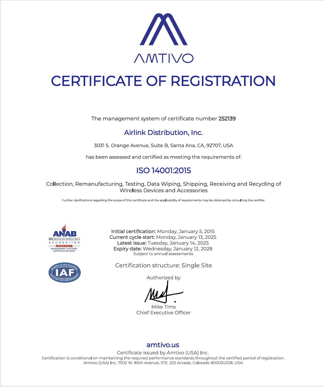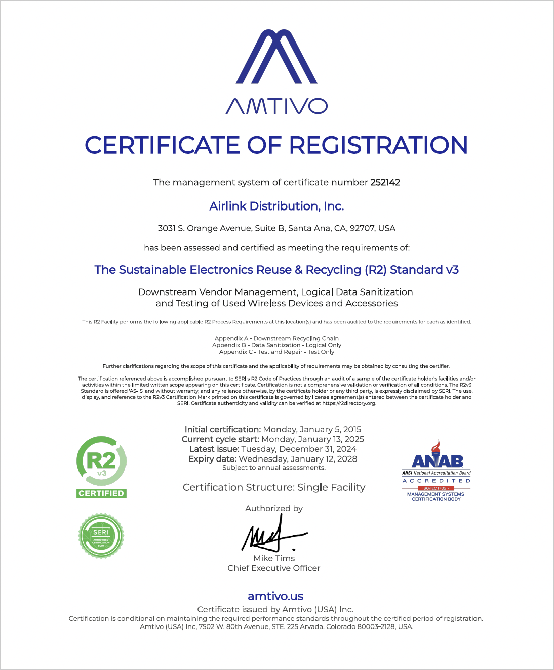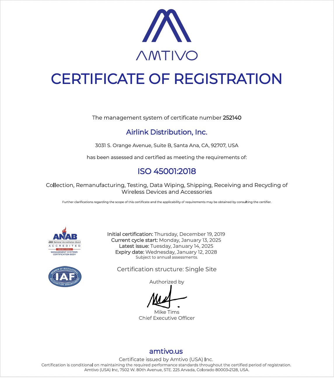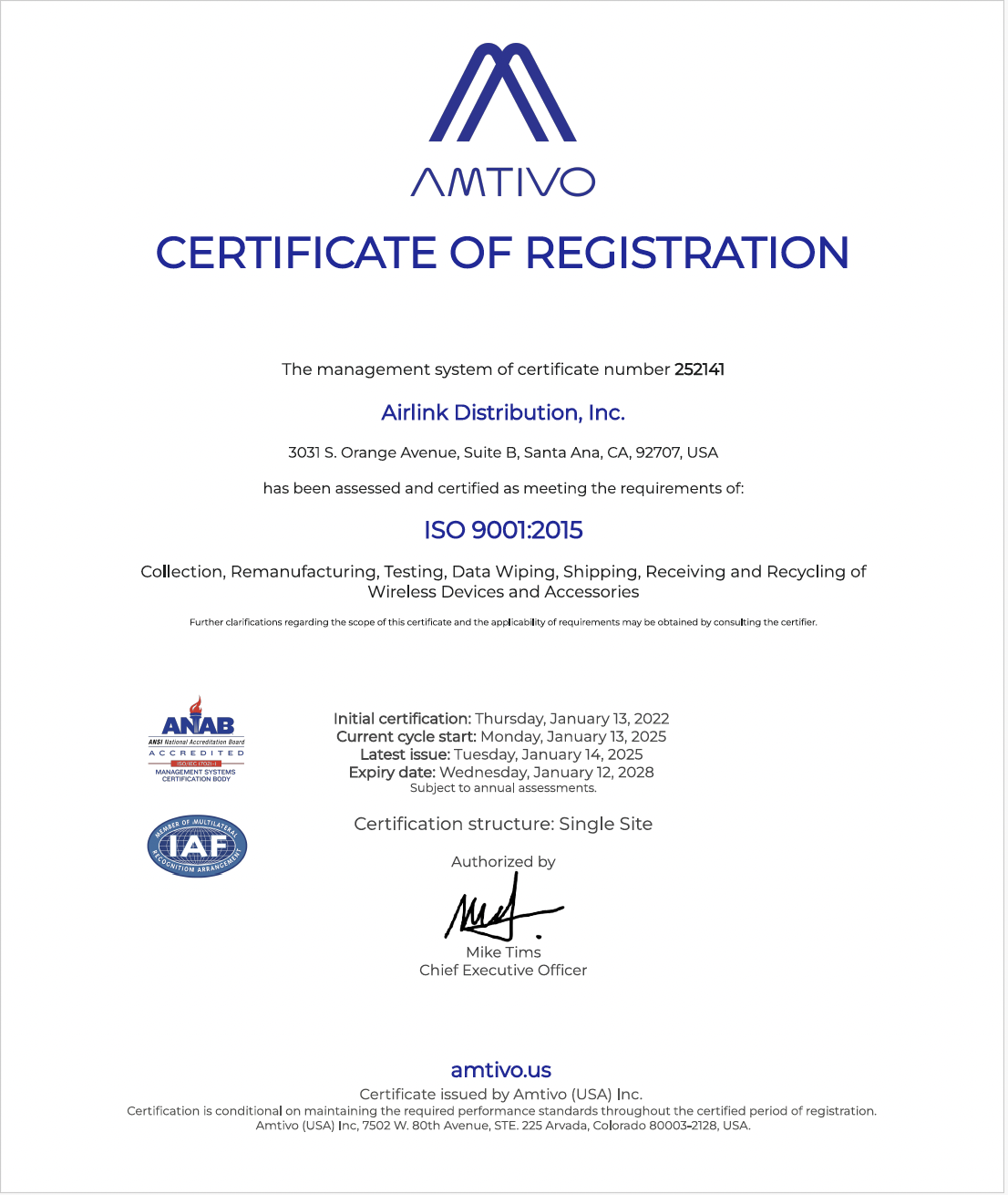 Airlink Distribution has evolved from a traditional value added reseller and distributor into an engineering and manufacturing enterprise. Airlink has developed a unique portfolio of value added and value salvage services for traditional OEMs, Carriers, Retailers, and Insurance Providers.